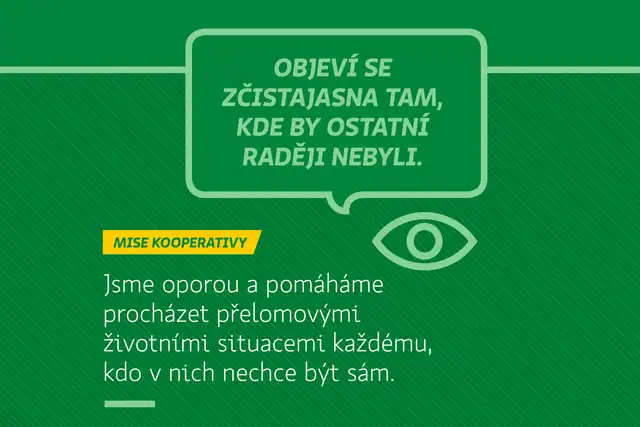 MISÍ Kooperativy je být oporou a pomocí procházet přelomovými životními situacemi každému, kdo v nich nechce být sám.