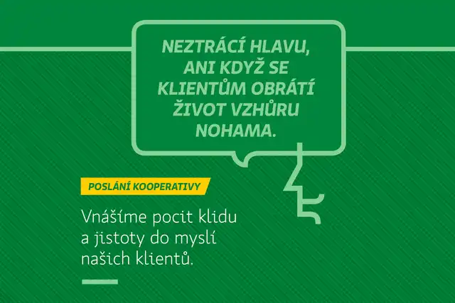 POSLÁNÍM Kooperativy je být pojišťovnou, jež dělá vše pro to, aby vnášela pocit klidu a jistoty do myslí svých klientů.
